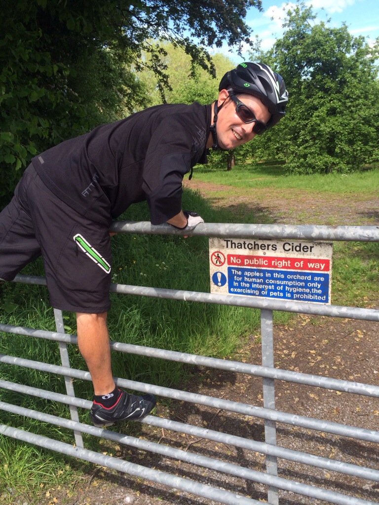 From the UK’s number-one city we headed south via Ashton Court and NCN33, before joining the A370 for some quick miles. At Cleeve we called in to see one of Bailey’s friends for a quick cup of tea and some route advice (thanks Andy!), before hitting the Strawberry Line cycle path down to Axbridge. This was a beautiful route that took us through miles of apple trees – exactly what you might expect from Somerset! We had to keep the Dawg on a pretty tight leash as we passed the orchards belonging to Thatchers Cider, or else his trip could’ve ended right there!